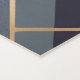 Golden lines and geometric shapes in indigo blue, blue-grey, and beige make up this stunning, contemporary illustration.