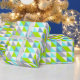 Geometric Green, Blue White Grey Triangles Pattern Wrapping Paper