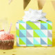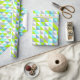Trendy geometric pattern in green, aqua blue, white, grey.