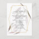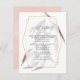Boho floral wedding guest details cards featuring greenery with gold geometric frame and blush pink watercolor wash reverse customizable to your event specifics.