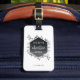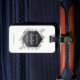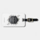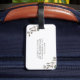 This trendy and inspirational luggage tag for the traveller features a black chalkboard look and faux gold geometric frame, with modern white handwritten script that says the quote "and so the adventure begins." The design appears on a white background, with hand drawn watercolor green leaves surrounding the frame as well as on the back, making this perfect for any adventurous travel lover!