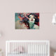 A digital masterpiece fusing human beauty with geometric abstraction. Vibrant coral and turquoise tones explode around a serene face, creating a hypnotic contrast between inner calm and outer energy. Modern art ideal for decorating with sophistication.