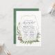 Woodland greenery long distance baby or bridal shower by mail invitation featuring wild herbs, ferns, leaves and eucalyptus with gold geometric frame.