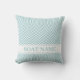 Aqua Herringbone pattern outdoor pillow. Coastal outdoor decor with geometric pattern in Aqua Blue and boat name template for outside seating areas. For beach house or nautical home decor select the material cotton or polyesther. This personalized pillow is a beautiful gift idea for her and him, boaters and sailors. Patio deck decorating ideas made with ocean love. © Design y.BEE SEA