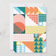 A geometric jumble pattern of different colourful shapes. This design looks really effective on these Invitations