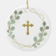 Geometric Leaf Greenery Baptized Ceramic Ornament