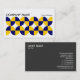 A business card template with an attractive geometric composition in an attractive palette of colours. Company details on the front with name and contact details on the back in white on a contrasting dark grey background. Can be adapted to a variety of businesses and other uses. Can also be changed for use more as a profile card by removing or swapping the company and personal name details.