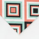 Fleece blanket with an eye-popping tile pattern in black, white, mint green, and coral orange.
