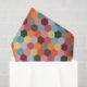 Modern colourful hexagon pattern. Trendy saturated colours (blue, teal, orange, grey, pink, burgundy, gold yellow, beige). Modern, with slightly mid-century look and feel. Stylish and unique.