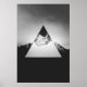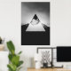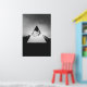 Geometric digital manipulation of majestic black and white mountain mirrored in a triangle.
