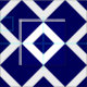 A bold, graphic pattern of interlocking navy and white diamond shapes. The white diamonds each contain a small dark blue diamond making navy the dominant colour of the geometric fabric design.
