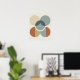 A modern abstract wall art print featuring overlapping geometric circles in muted tones of beige, terracotta, and blue. With its balanced symmetry and minimal style, this artwork adds a contemporary touch to living rooms, bedrooms, or office spaces.