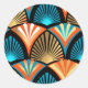 Geometric palm leaves golden pattern in Art Deco Classic Round Sticker