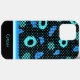 Phone case cover with geometric shapes blue and turquoise colour on black background
