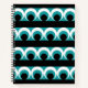 Geometric pattern illustration with stripes, circles and round shapes in turquoise, black and white colours