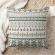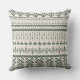 This pillow showcases an intricate geometric pattern on a cream-coloured background, featuring dark green designs. The symmetrical arrangement of diamonds, triangles, and lines creates a visually striking and structured aesthetic. The repeating horizontal rows add depth and character to the pillow, making it an excellent decorative piece for a modern or bohemian-styled space.