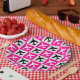 Chequered Geometric Pink Black and White Airplane Pattern Design