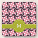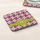 Geometric Pink Burgundy Floral Green Lime Monogram Coaster
