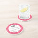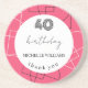 Stylish birthday thank-you party coaster in a chic pink, black, and white geometric pattern.