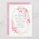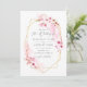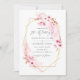 Pink watercolor floral spring wedding invitation featuring sakura blossom with gold geometric frame customizable to your event specifics.