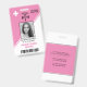 Geometric pink triangles Registered nurse RN id badge. This modern geometric design features pink and white diagonal triangles with your photo, logo, caduceus and barcode.