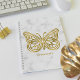 Modern and trendy white marble and printed gold foil geometric butterfly personalized design.