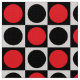 Chequered geometric Red and black circle dot surface pattern design fabric.
