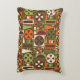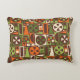 This original, retro 1950s / 1960s mid-mod abstract geometric pattern rectangular pillow design is made of triangles, squares, rectangles and circles. It's made in vintage shades of orange, green and cream on a brown background. This pretty pattern repeats seamlessly. It's for fans of midcentury modern art.
