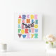 Geometric Retro Alphabet Square Wall Clock