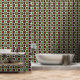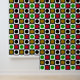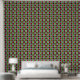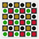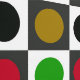 Chequered Geometric Retro Classic circle Dots red, green, yellow, black and white Black and White on grey and black squares Pattern Design Wallpaper