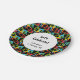 This paper plate is decorated with a cool graphic geometric pattern featuring rounded rectangles and circles with offset cutouts, reminiscent of mid century modern design, has been updated with a lively palette of various colours. Text is easy to customize for your party or event.
