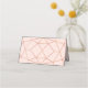 Wedding escort card in geometric rose gold design pattern.