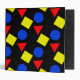 The school binder shows a geometric design of triangular, circular and square shapes in the primary colours red, blue and yellow. The background colour and the text on the spine can be customized. The binder is part of a school bag design series that includes a selection of fashion accessories. For customization enquiries please contact us using the button below.