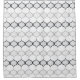 This modern shower curtain features a simple geometric design in shades of navy blue and grey.