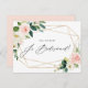 Geometric Watercolor Spring Blooms Will You Be My Jr Bridesmaid Card | Ask family and friends to be part of your wedding with this customizable bridal party proposal card. It features watercolor illustrations of white, peach and pink roses and peonies, foliage accents and faux foil geometric frame. This floral junior bridesmaid proposal card is perfect for garden and spring weddings.