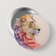 This design features a majestic lion depicted in a geometric style, resembling the intricate patterns of stained glass. The lion’s mane is composed of sharp, angular shapes, showcasing a vibrant array of colours such as deep golds, rich oranges, and vivid reds, contrasted against lighter shades of turquoise and green. The lion's face is expressive, with bold lines and facets that reflect light, adding depth and dimension. The background is a soft, light colour, providing a subtle contrast that enhances the vibrancy of the lion. This artwork is perfect for a button design, combining both elegance and a striking visual impact.