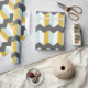 Moden geometric pattern with mint green, mustard yellow, white and grey stripes.