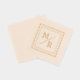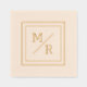 Geometric design of Foil Stamped Napkins with monograms. Wedding napkin with two monograms in minimalist style.