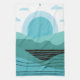 Geometric Sun Mountain Abstract with Tribal Border Kitchen Towel
