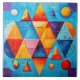 Geometric Symbols Abstract #09. A symphony of colourful shapes converges in a kaleidoscope of hues, crafting a surreal geometric abstract dreamscape. Bold triangles, circles, and arcs blend seamlessly in a dance of vibrant blues, yellow, orange and purple.
