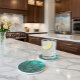 Geometric Teal and Gold Sandstone Coaster