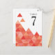 If you like being different, you'll love this bold and modern table card that features an abstract diamond/triangle geometric pattern in shades of coral, peach and salmon. Available in 8 fab colours: fuschia, coral, lilac, mint, teal, pink, periwinkle and yellow. Click the CUSTOMIZE IT button to personalize with your own text. SEE THE ENTIRE COLLECTION AT: glamprettyweddings.com. For questions or custom requests, email: cheryl@cheryldanielsart.com. "Geometric Triangles" original design by Cheryl Daniels © 2014.
