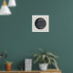 This minimalist art print features a large navy blue circle partially filled with a hand-drawn tribal pattern, creating the illusion of a lunar eclipse. The geometric, tribal pattern is made up of lines, squares, and triangles. This print comes in 3 color variations, and is bold and modern enough to be featured in a loft apartment, or in a man's living room or office.