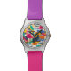 They color and design is exactly what I expected. Decent quality watch however the buckle is plastic that seems a little flimsy. They design is really cute and the colors were true to what showed online. If recommend offering a larger or oversized option since the is the design on the face and it is really quite small. It could be more of a statement pice of it was larger.