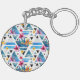 Geometric Tropical Flowers Pattern Keychain