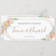Wedding seating chart card in geometric watercolor flower design pattern.
