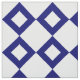 A bold, geometric pattern of interlocking navy and white diamond shapes. The dark blue diamonds each contain a small white diamond making white the dominant colour of the fabric design.