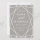 These elegant wedding invitations have a rich grey background and a white modern geometric design. All of your text is in white. An ultra stylish look for your wedding!