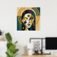 Elevate your space with this striking contemporary art piece that merges Bauhaus minimalism with modern spiritual iconography. This symmetrical portrait uses bold circular motifs and fluid lines to evoke a sense of deep mindfulness and inner harmony.
