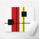 Modern art abstract geometrical design with black, red, yellow lines and black squares on white background